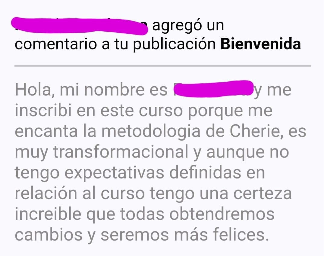 Me ha encantado. Todo el contenido del taller ha sido muy enriquecedor. Linda energía de Cherie y del grupo.